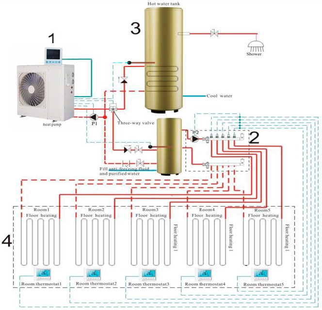 • Використовуються високоефективні спіральні компресори з функцією EVI – низький рівень вібрації, шуму та висока надійність.